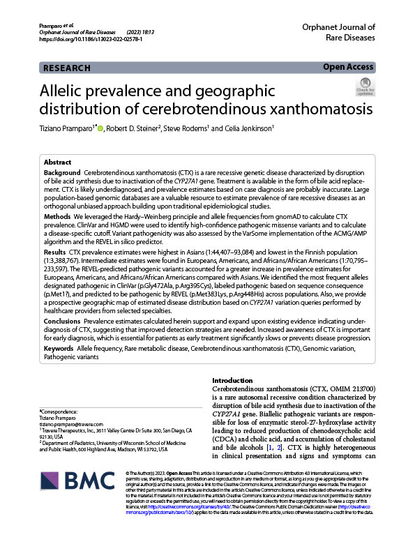 Travere Study: In a global study of cerebrotendinous xanthomatosis (CTX), researchers used VarSome Insights to access real‐world search patterns from clinicians. This enabled them to map variant prevalence and geographic distribution of CYP27A1, highlighting regions where CTX may be underdiagnosed. The results helped improve understanding of disease burden worldwide.